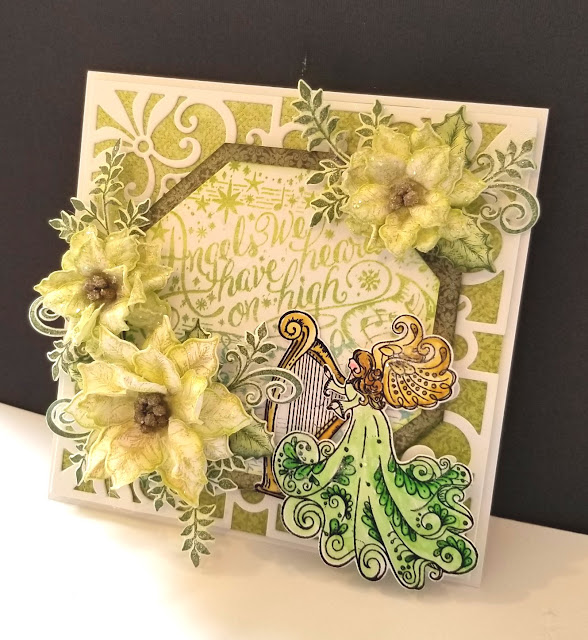 Poinsettia Cling Stamp Set in Pistachio, sponge with same, cut out with